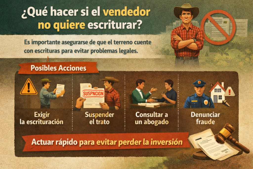 Cuando un vendedor no quiere escriturar una propiedad, el comprador puede enfrentarse a incertidumbre legal, retrasos y posibles pérdidas económicas. Entender qué hacer en esta situación es clave para proteger tu inversión y tomar decisiones informadas. Este artículo explica de forma clara y actualizada qué opciones existen cuando el vendedor no quiere escriturar y cómo actuar paso a paso.